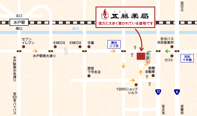 水戸駅から五藤薬局までの道のりを写真付きでご案内いたします。ご来店の際の参考になさってください。