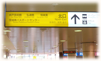 改札口を出ると右手が「北口」、左手が「南口」になります。バスでお越しになる場合には「北口」方面へお進みください。